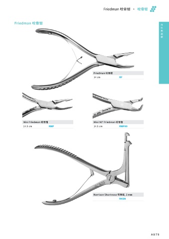 Friedman 咬骨钳 • 咬骨钳 Friedman 咬骨钳 外 科 类 器 械 Friedman 咬骨钳 14 cm RF Mini Friedman 咬骨钳 Mini 90° Friedman 咬骨钳 14.5 cm RMF 14.5 cm RMF90 Kerrison Shortnose 咬骨钳, 3 mm RKSN A879
