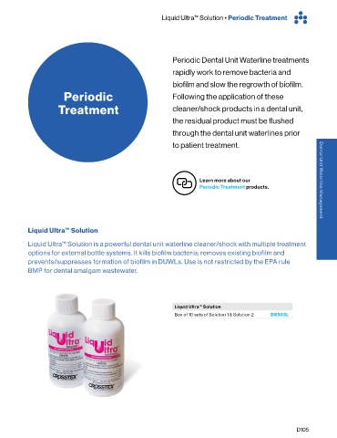 Liquid Ultra™ Solution is a powerful dental unit waterline cleaner/shock with multiple treatment